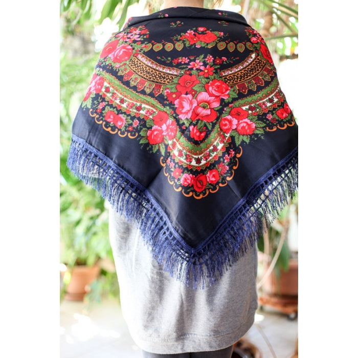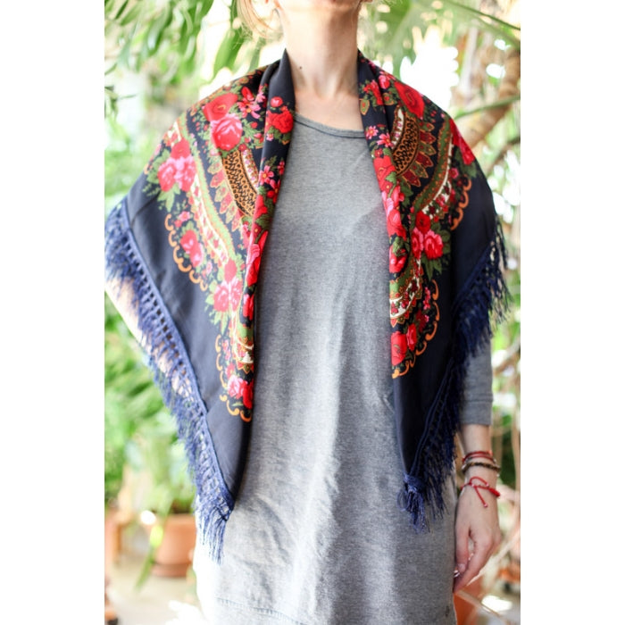 - Eșarfe și șaluri tradiționale, brodate sau imprimate, ideale pentru a accesoriza orice ținută, fie tradițională, fie modernă.