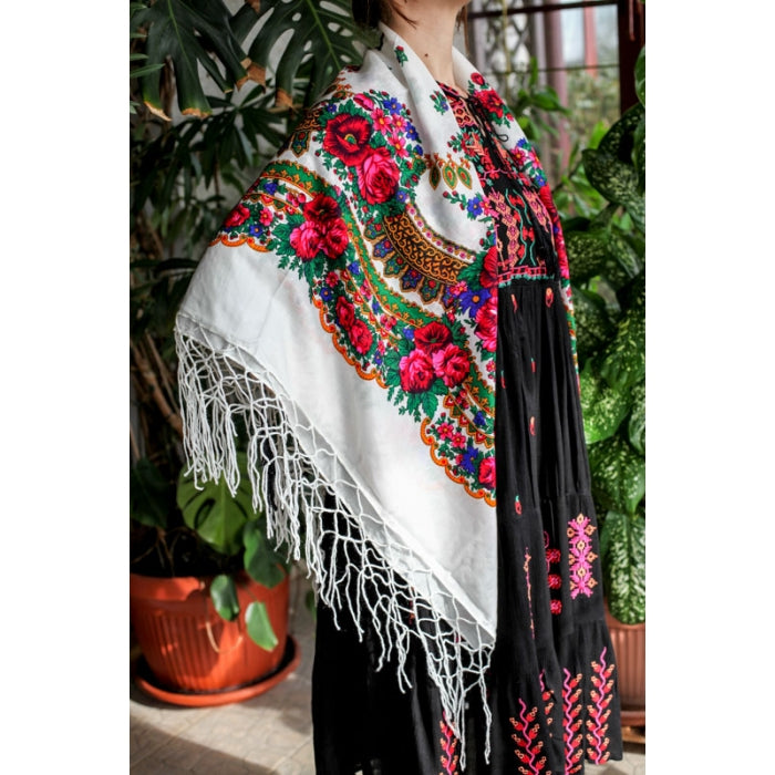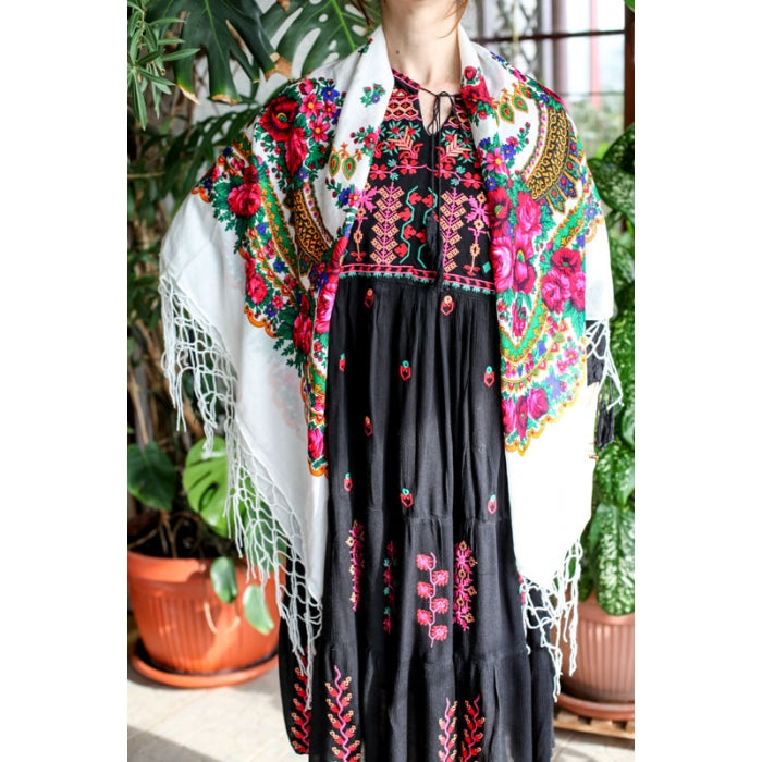 - Eșarfe și șaluri tradiționale, brodate sau imprimate, ideale pentru a accesoriza orice ținută, fie tradițională, fie modernă.