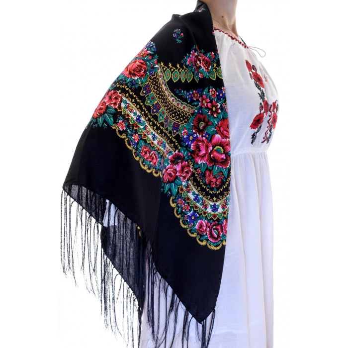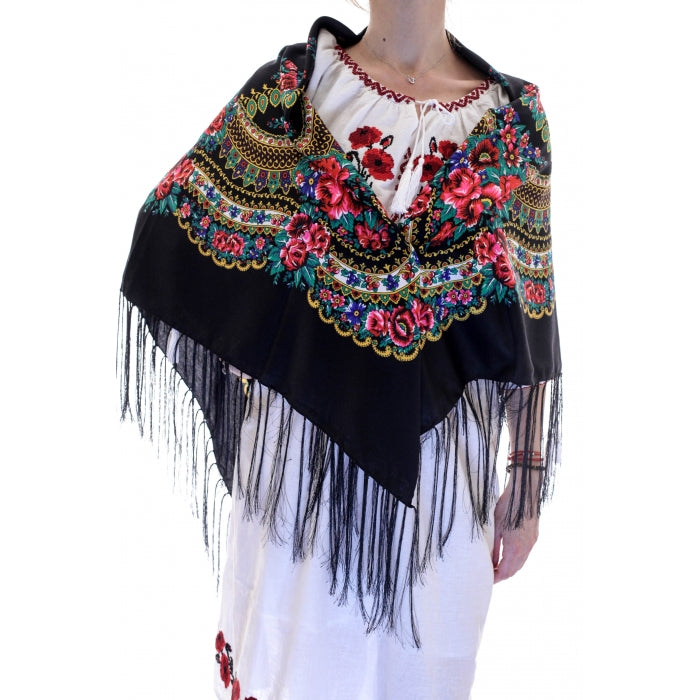 Eșarfe și șaluri tradiționale, brodate sau imprimate, ideale pentru a accesoriza orice ținută, fie tradițională, fie modernă.