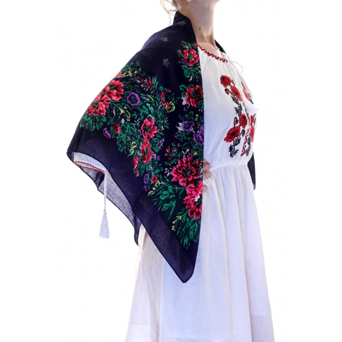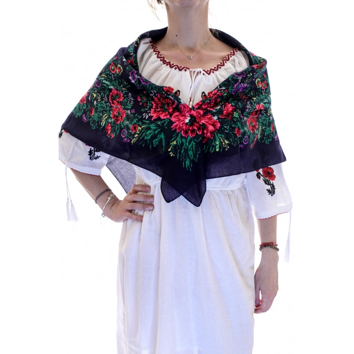 Eșarfe și șaluri tradiționale, brodate sau imprimate, ideale pentru a accesoriza orice ținută, fie tradițională, fie modernă.