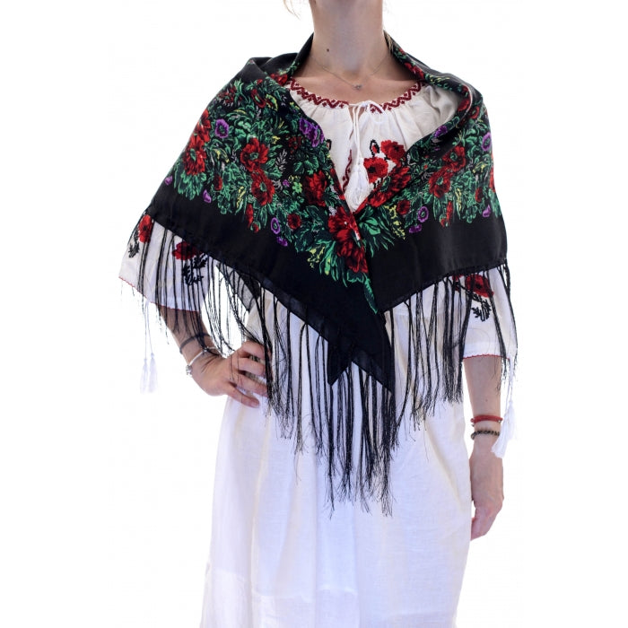 Eșarfe și șaluri tradiționale, brodate sau imprimate, ideale pentru a accesoriza orice ținută, fie tradițională, fie modernă.