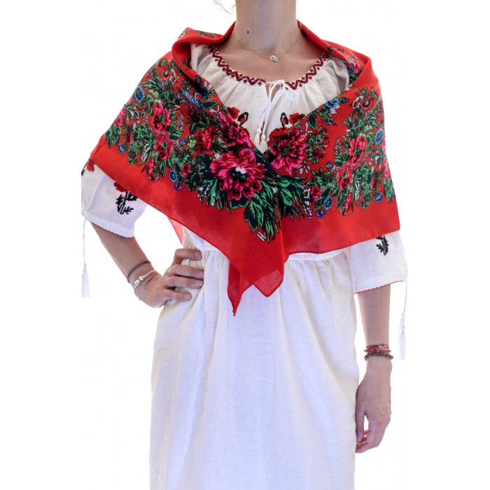Eșarfe și șaluri tradiționale, brodate sau imprimate, ideale pentru a accesoriza orice ținută, fie tradițională, fie modernă.