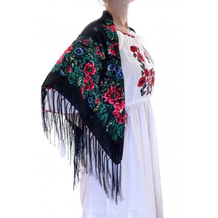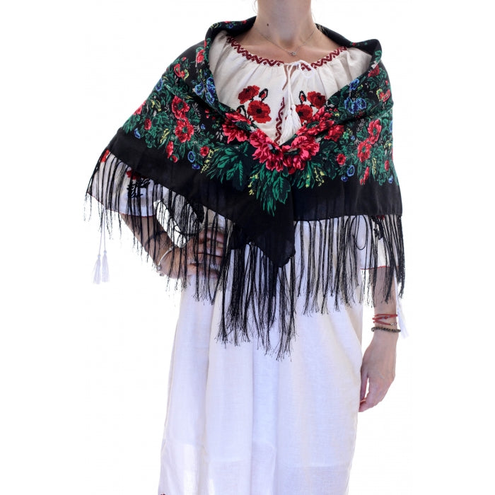 Eșarfe și șaluri tradiționale, brodate sau imprimate, ideale pentru a accesoriza orice ținută, fie tradițională, fie modernă.
