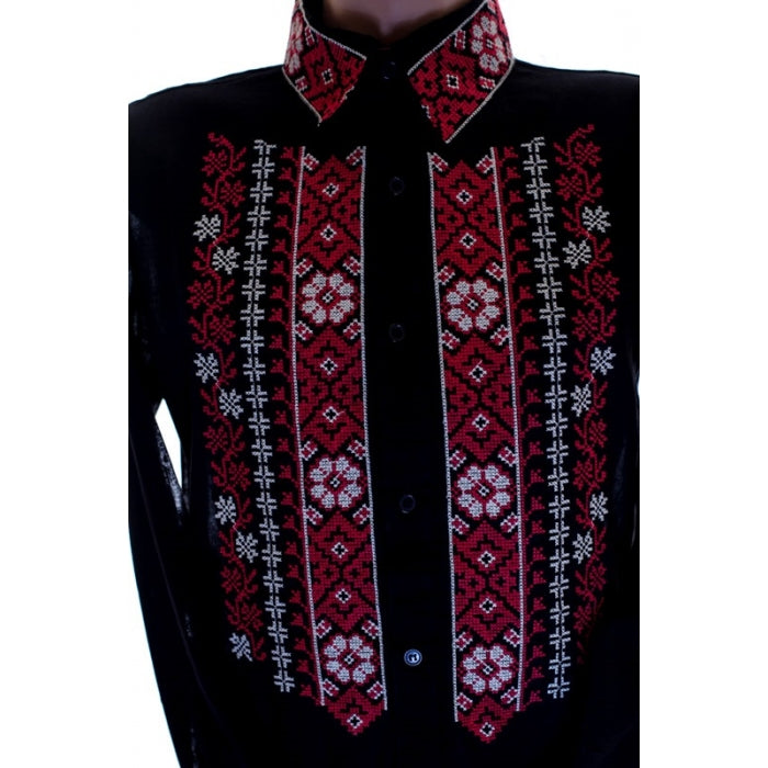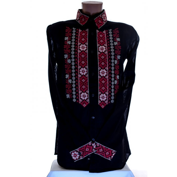 Camasa romaneasca pentru barbati cu model traditional brodat la masina.