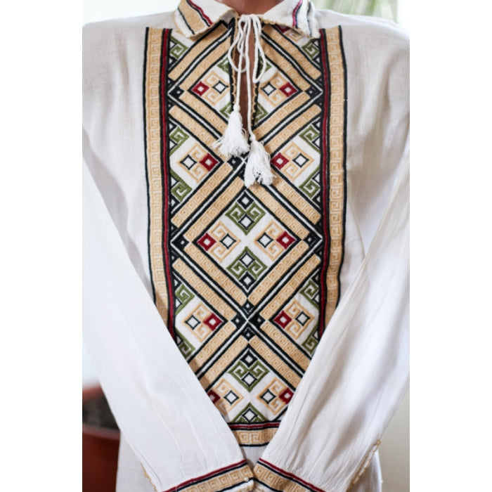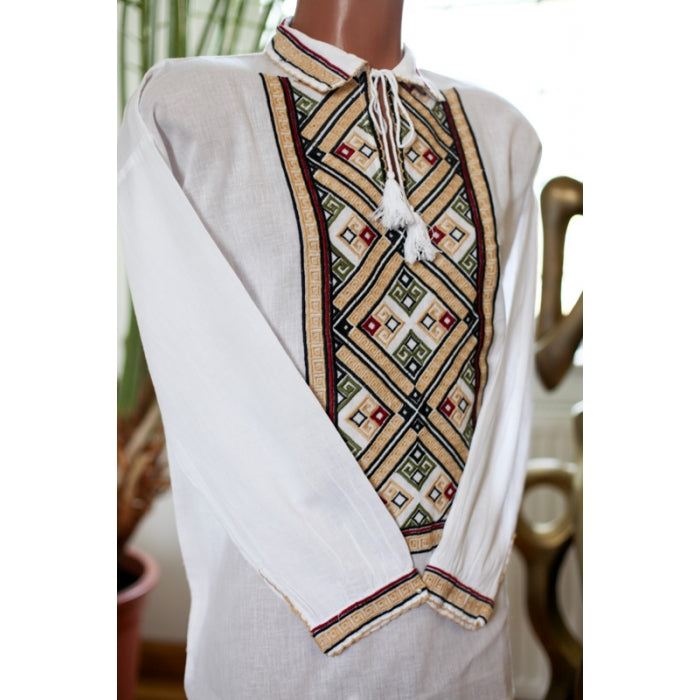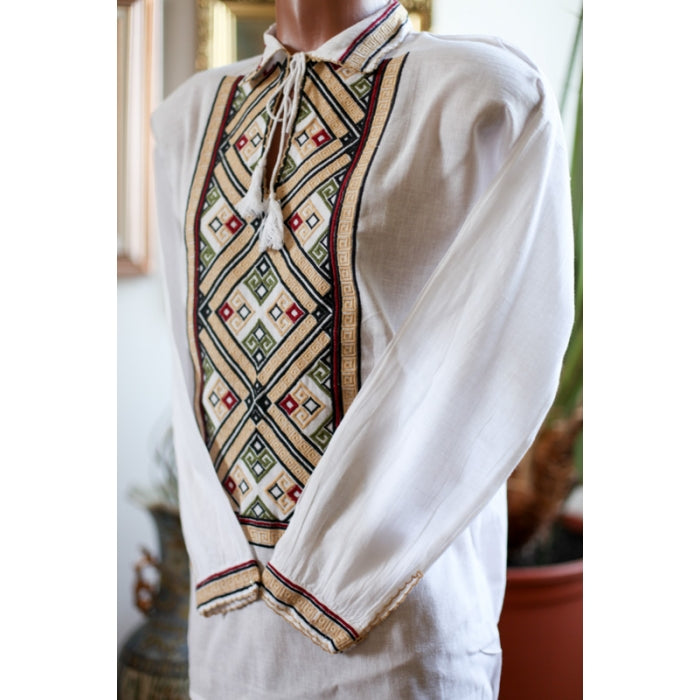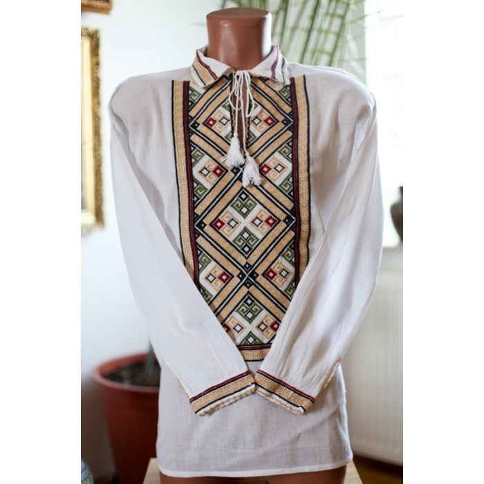 Camasa barbateasca cu motive traditionale romanesti brodate la masina.