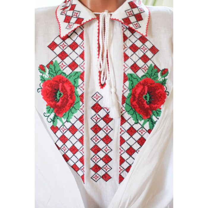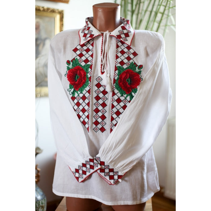 Camasa barbateasca cu motive traditionale romanesti brodate la masina.