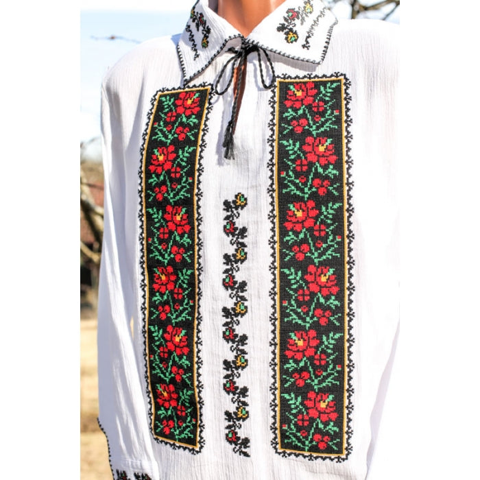 Camasa tip ie romaneasca stilizata pentru barbati cu model traditional brodat la masina. Materialul si broderia sunt de inalta calitate.