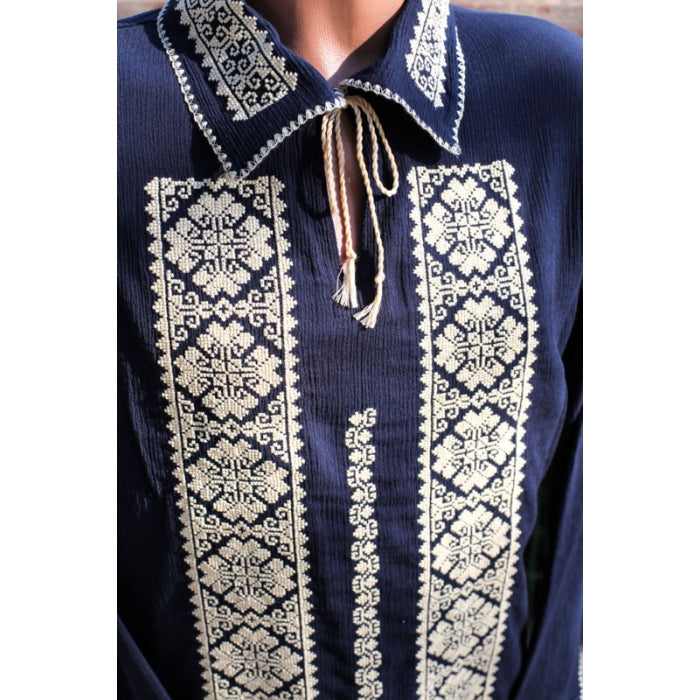 Camasa tip ie romaneasca stilizata pentru barbati cu model traditional brodat la masina. Materialul si broderia sunt de inalta calitate.