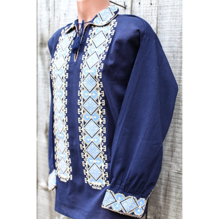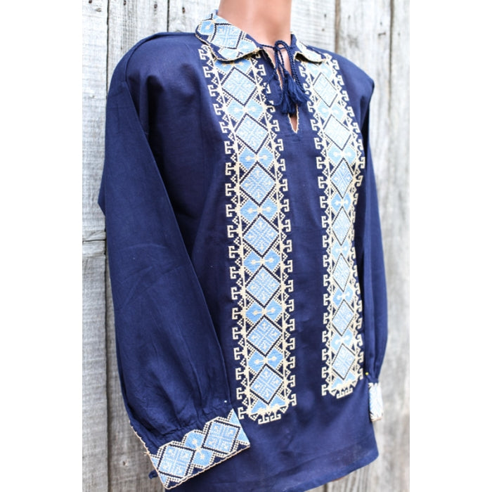 Camasa romaneasca pentru barbati cu model traditional brodat la masina.