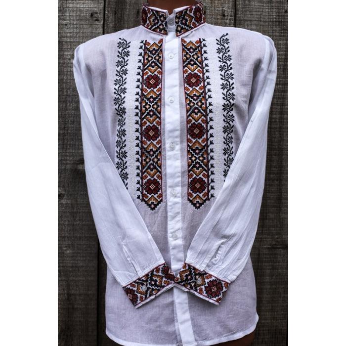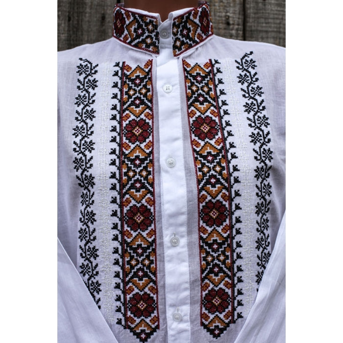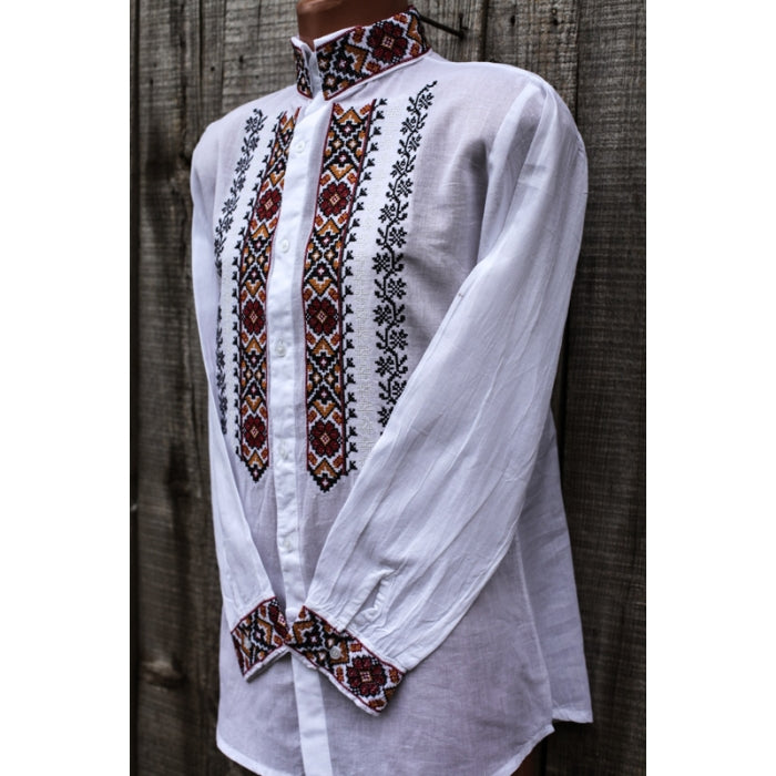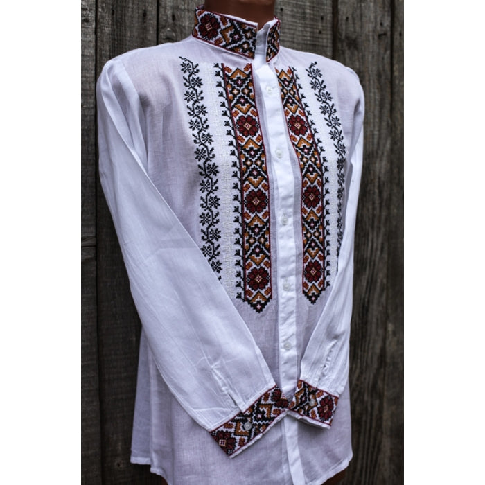 Camasa romaneasca pentru barbati cu model traditional brodat la masina.