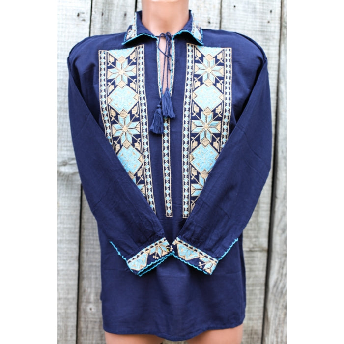Camasa romaneasca pentru barbati cu model traditional brodat la masina.