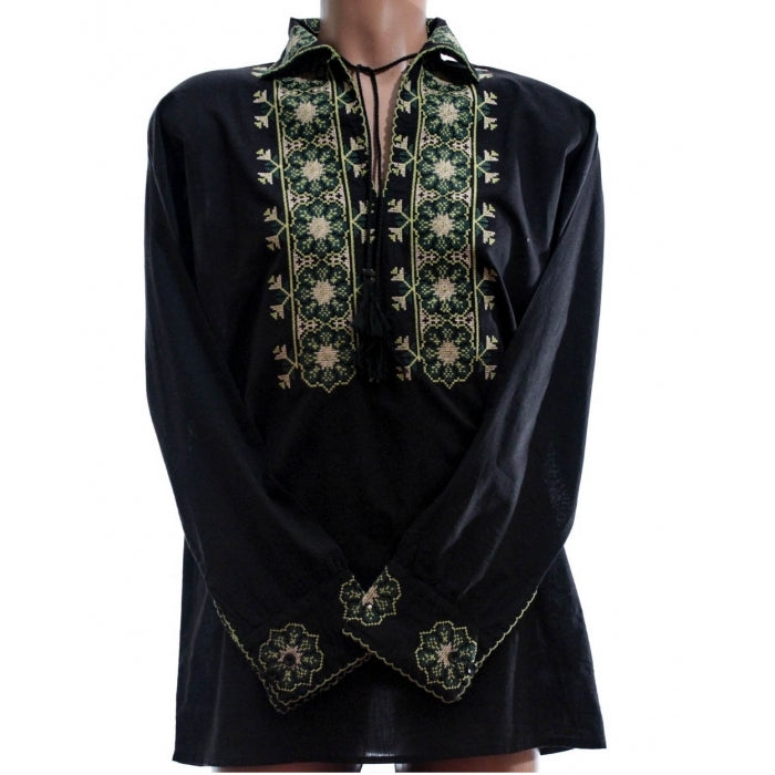 Camasa romaneasca pentru barbati cu model traditional brodat la masina.