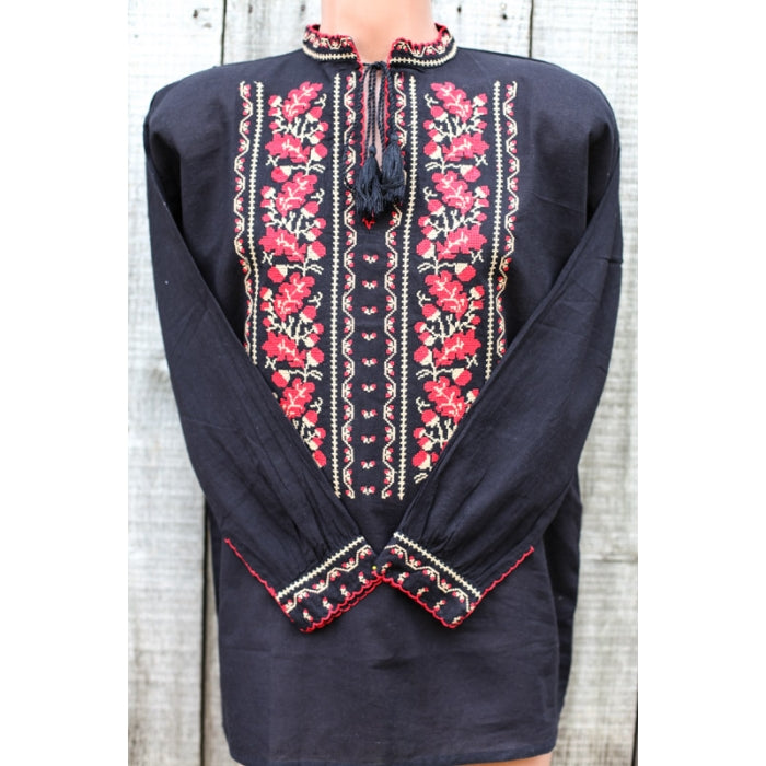 Camasa romaneasca pentru barbati cu model traditional brodat la masina.