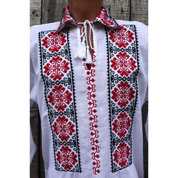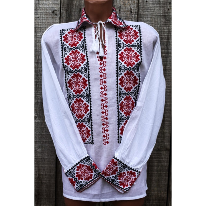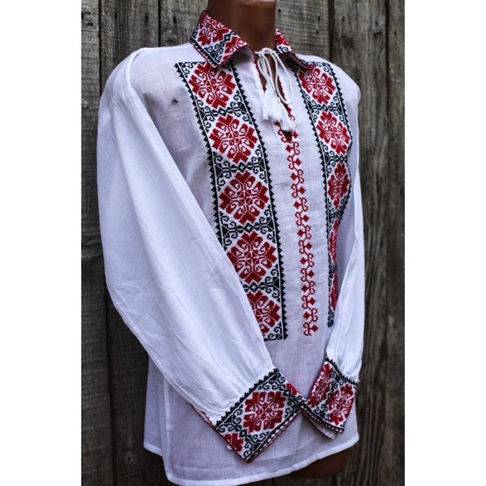 Camasa romaneasca pentru barbati cu model traditional brodat la masina.