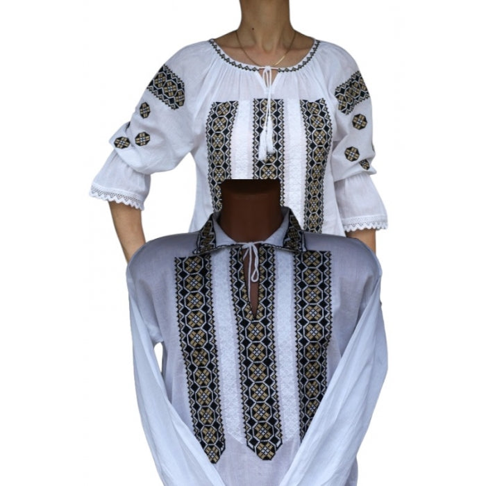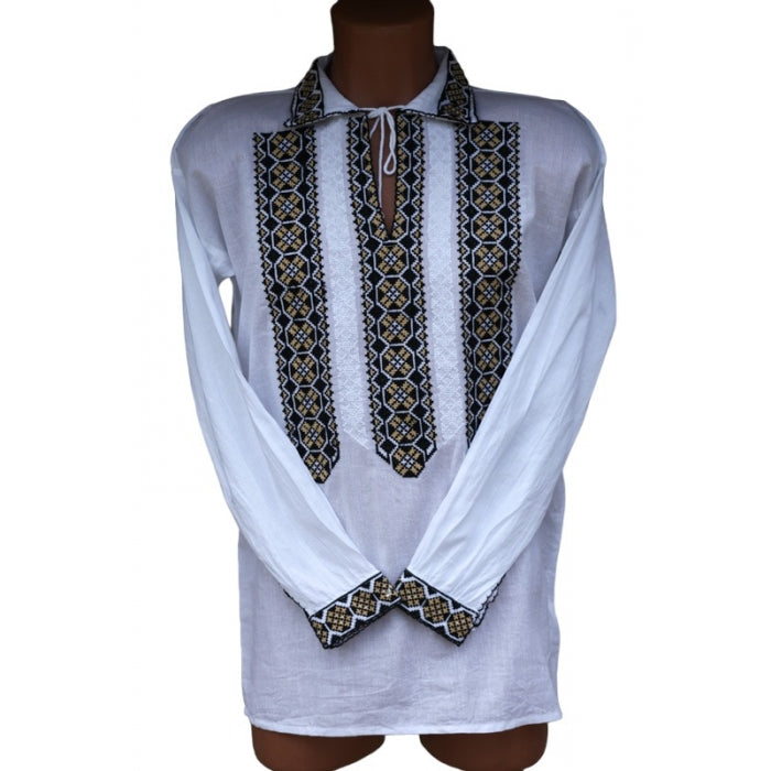 Camasa romaneasca pentru barbati cu model traditional brodat la masina.