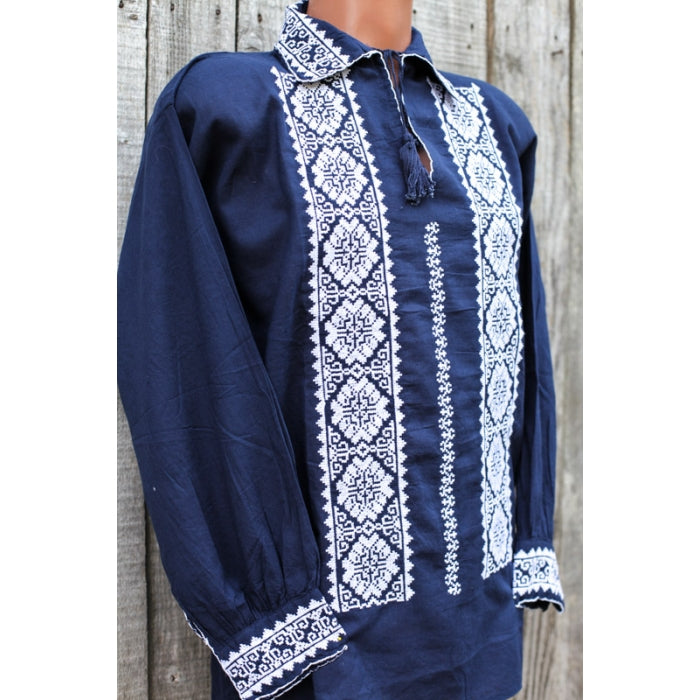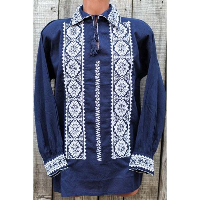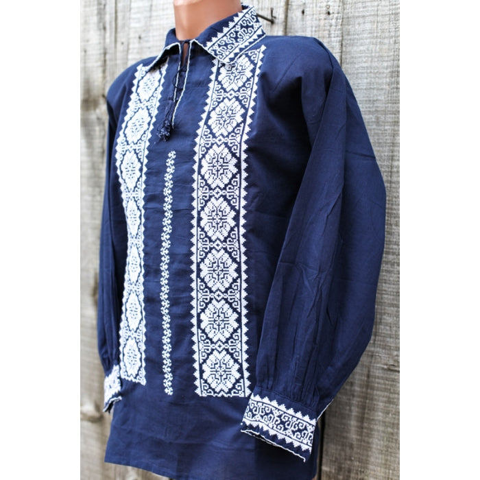 Camasa romaneasca pentru barbati cu model traditional brodat la masina.