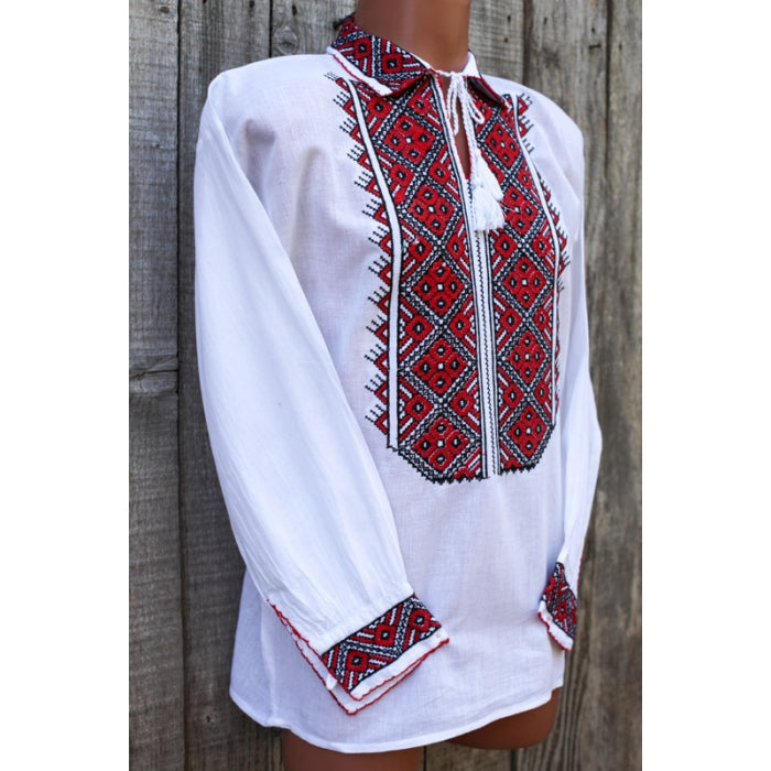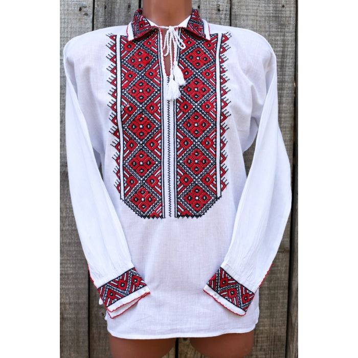 Camasa romaneasca pentru barbati cu model traditional brodat la masina.