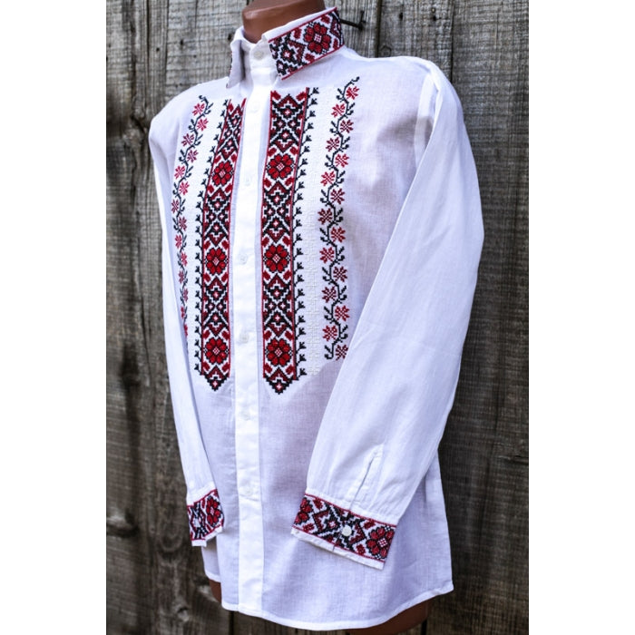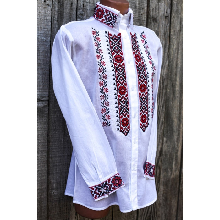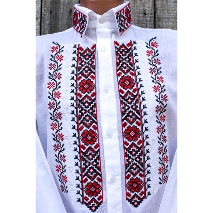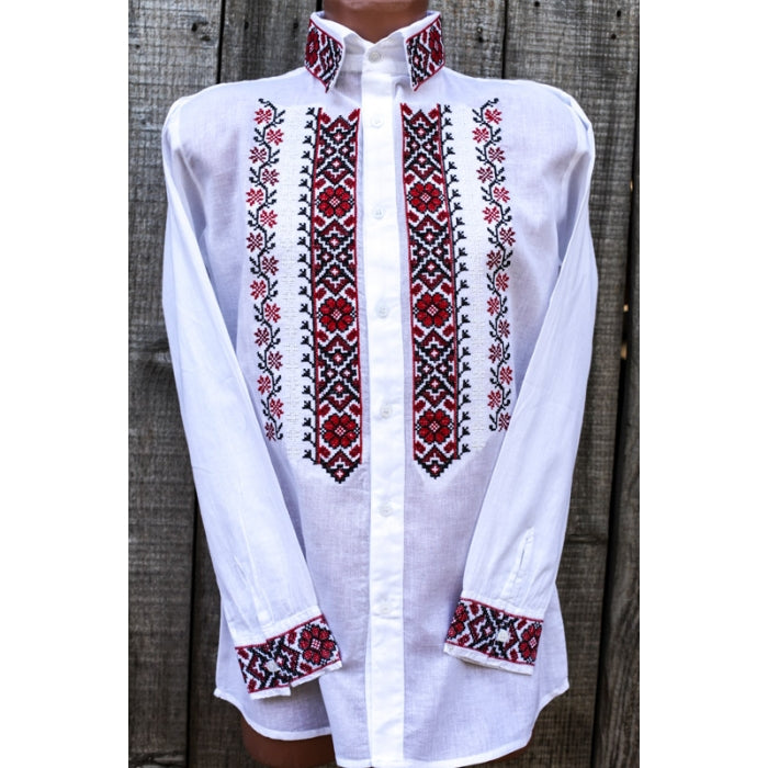 Camasa romaneasca pentru barbati cu model traditional brodat la masina.