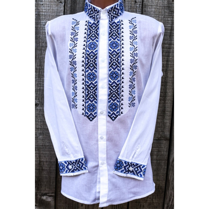 Camasa romaneasca pentru barbati cu model traditional brodat la masina.