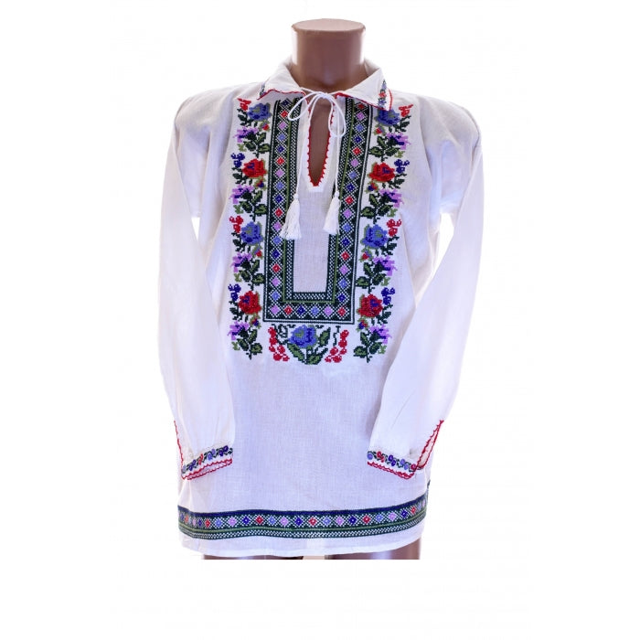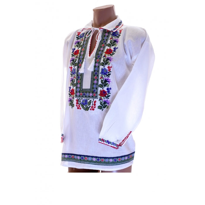 Camasa romaneasca pentru barbati cu model traditional brodat la masina.