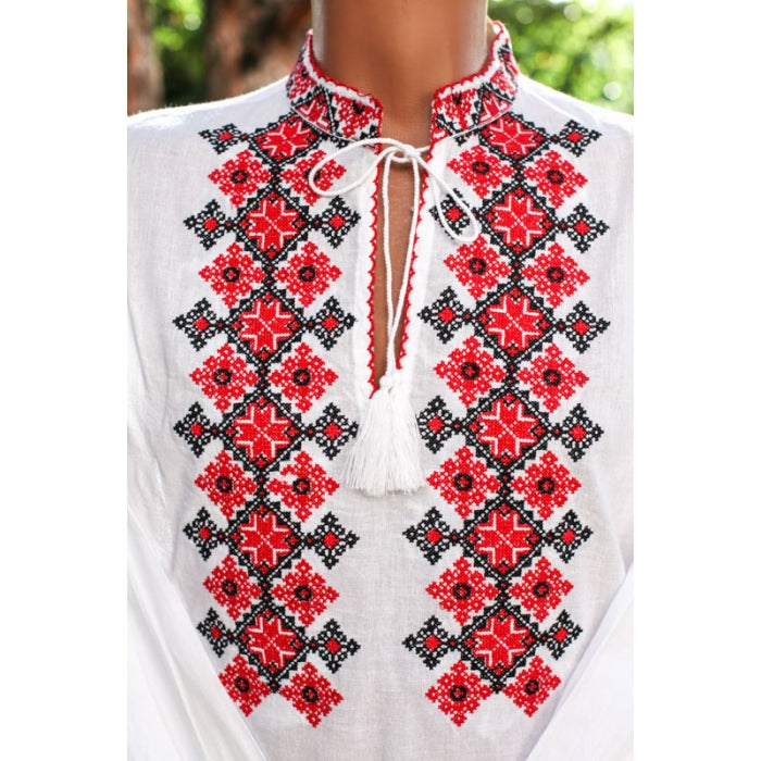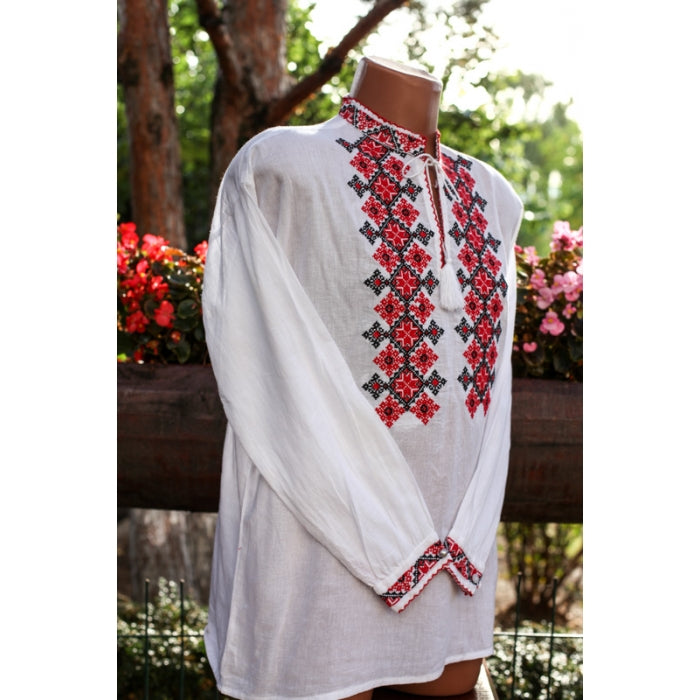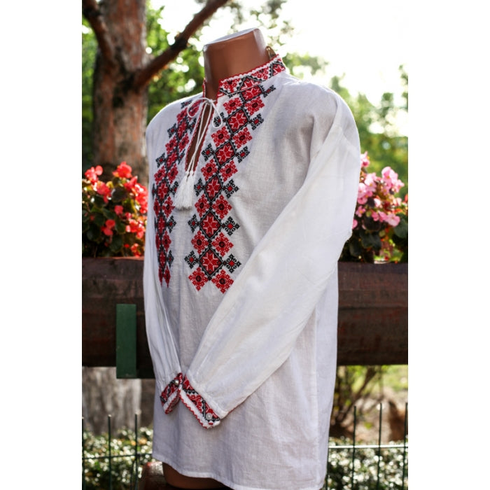 Camasa romaneasca pentru barbati cu model traditional brodat la masina.