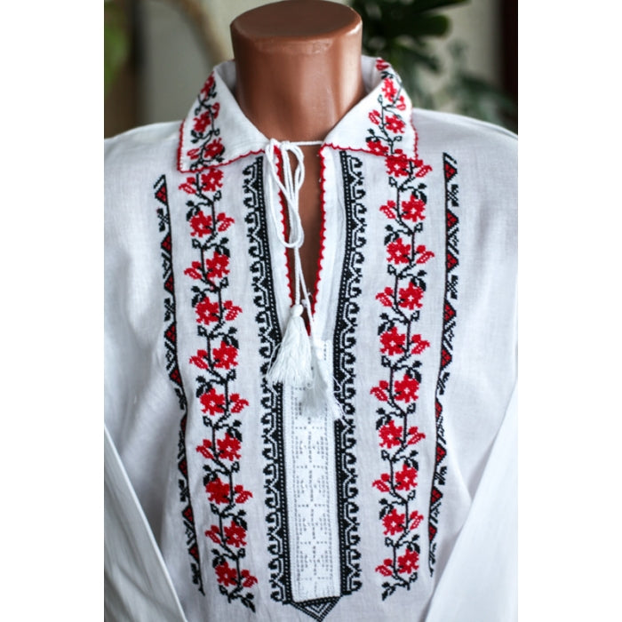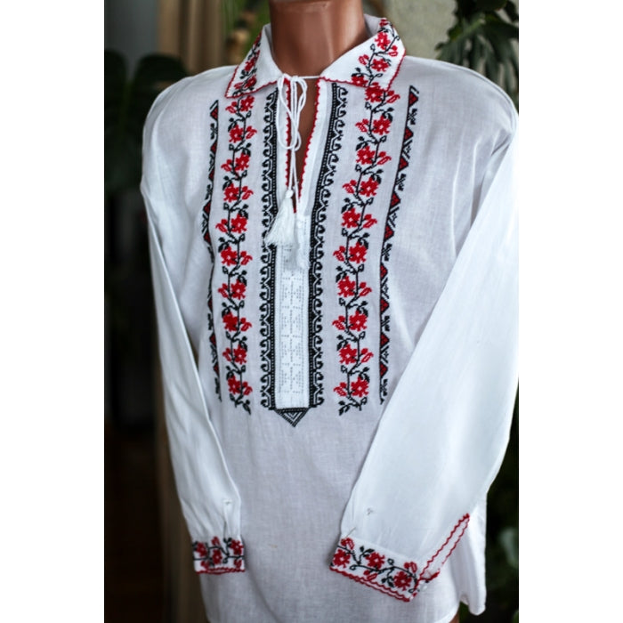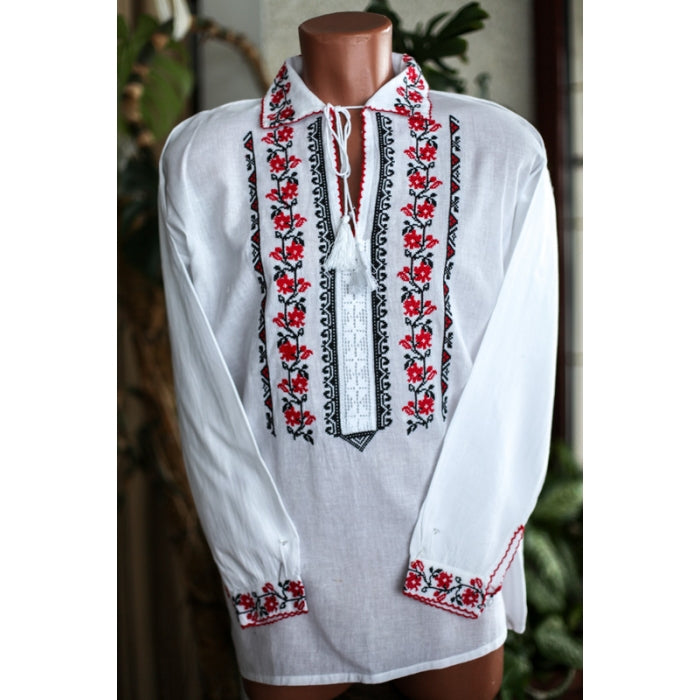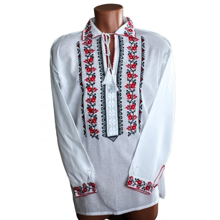 Camasa romaneasca pentru barbati cu model traditional brodat la masina.