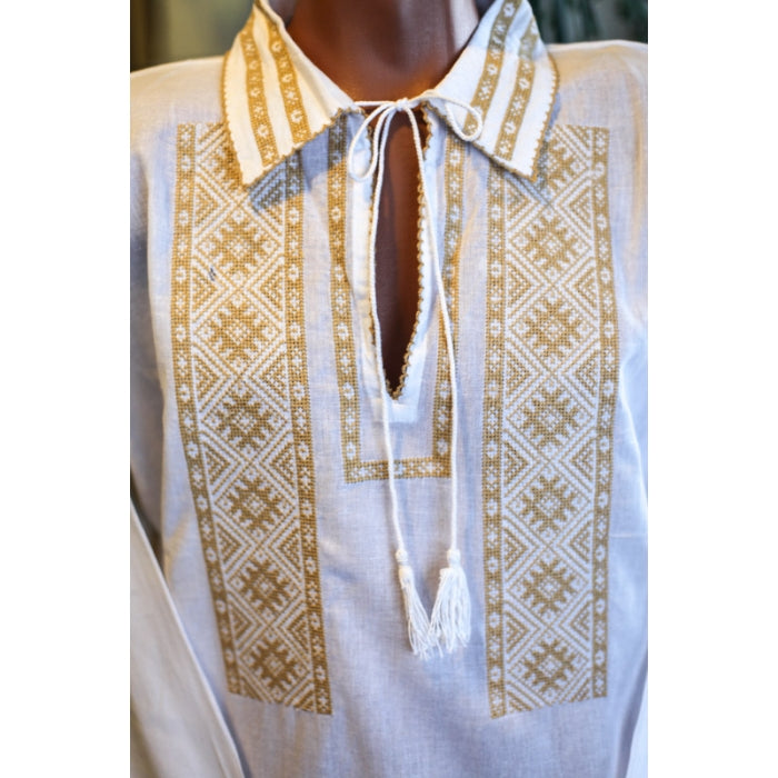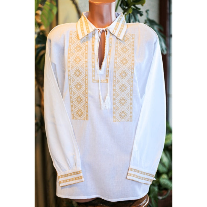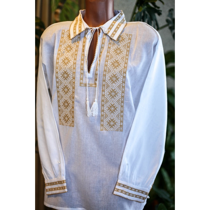 Camasa romaneasca pentru barbati cu model traditional brodat la masina.