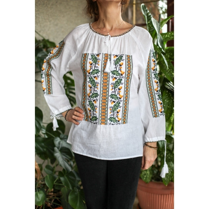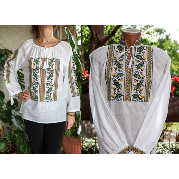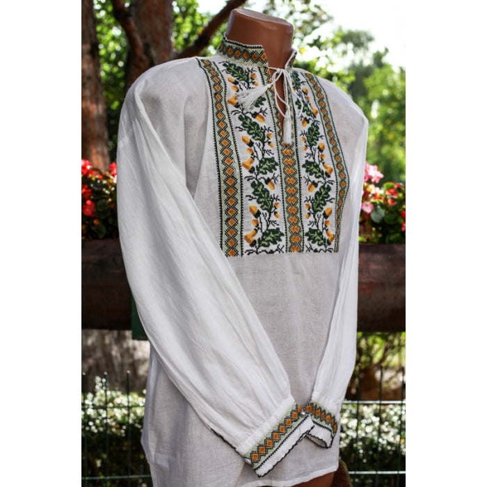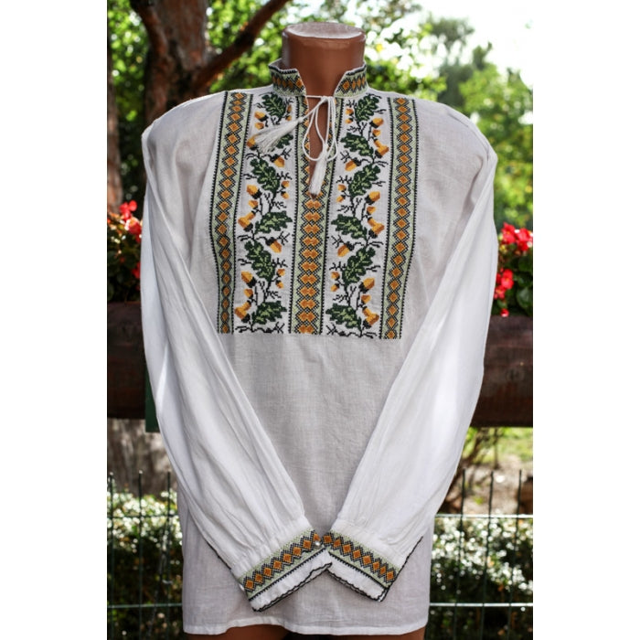 Camasa romaneasca pentru barbati cu model traditional brodat la masina.