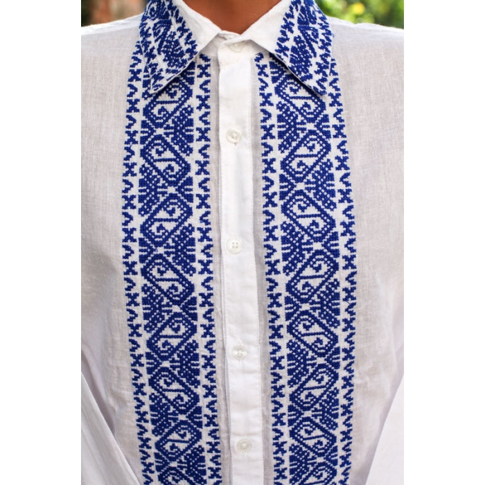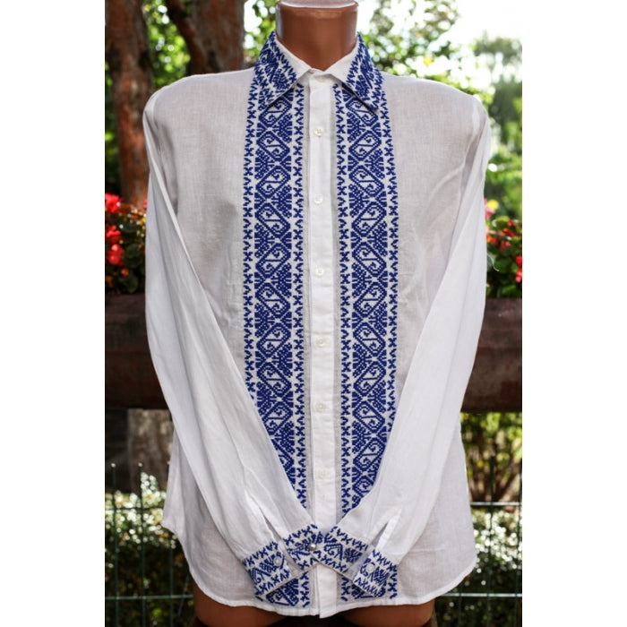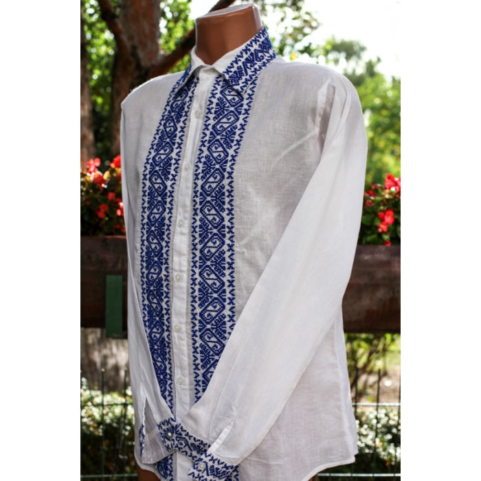 Camasa romaneasca pentru barbati cu model traditional brodat la masina.