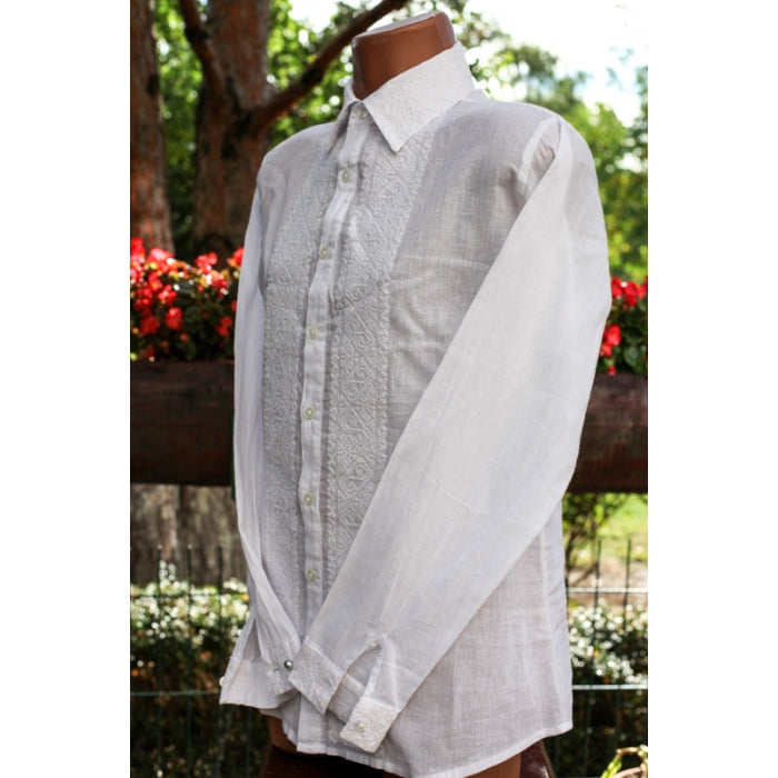 Camasa romaneasca pentru barbati cu model traditional brodat la masina.