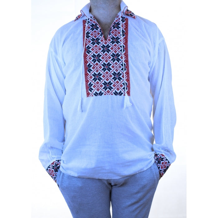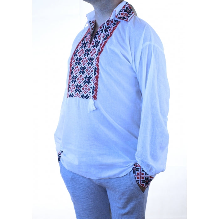 Camasa romaneasca pentru barbati cu model traditional brodat la masina.