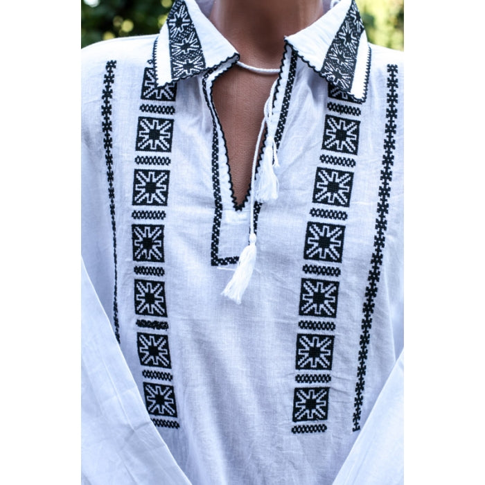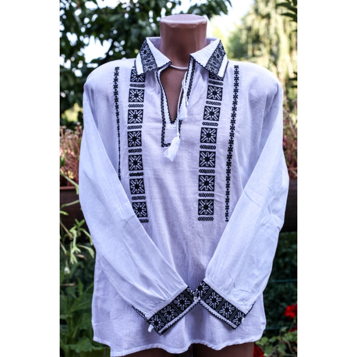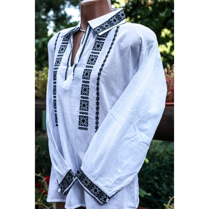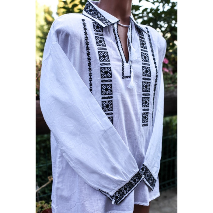 Camasa romaneasca pentru barbati cu model traditional brodat la masina.