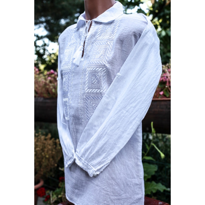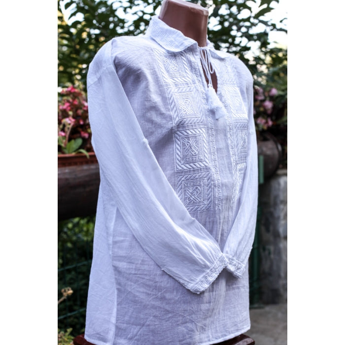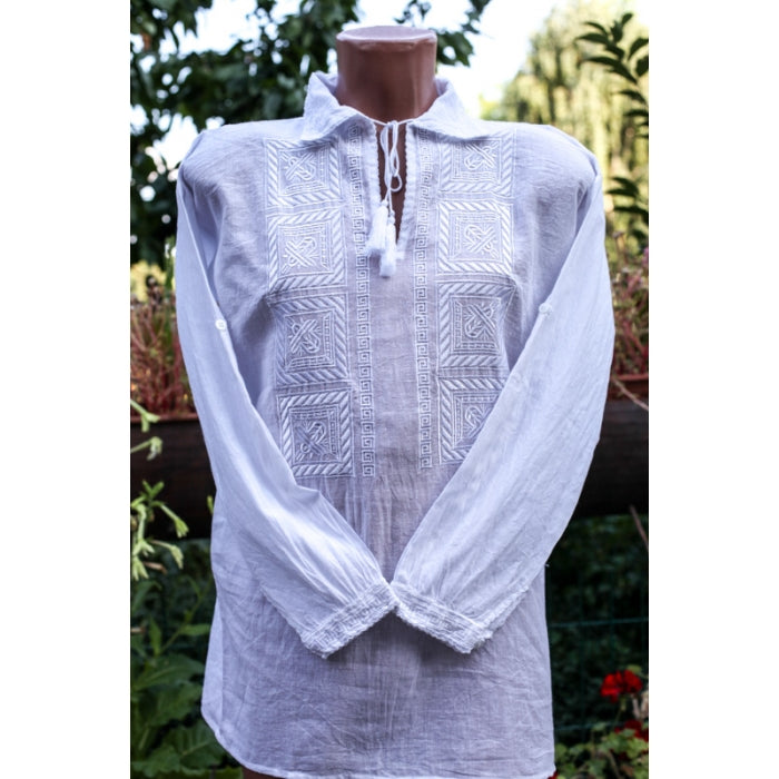 Camasa romaneasca pentru barbati cu model traditional brodat la masina.