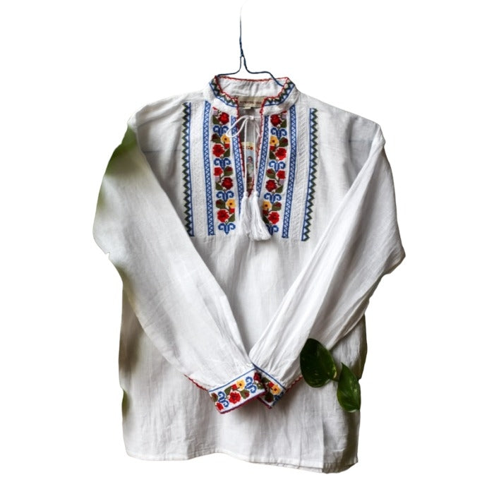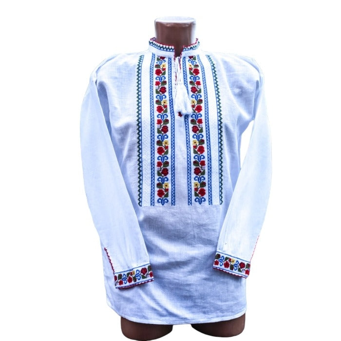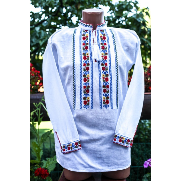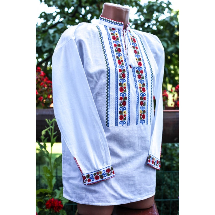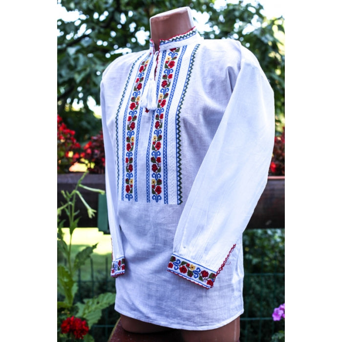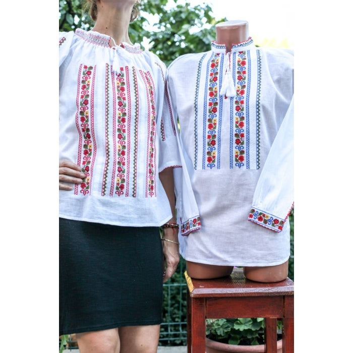 Camasa romaneasca pentru barbati cu model traditional brodat la masina. Set ie dama barbati, ii sot sotie.
