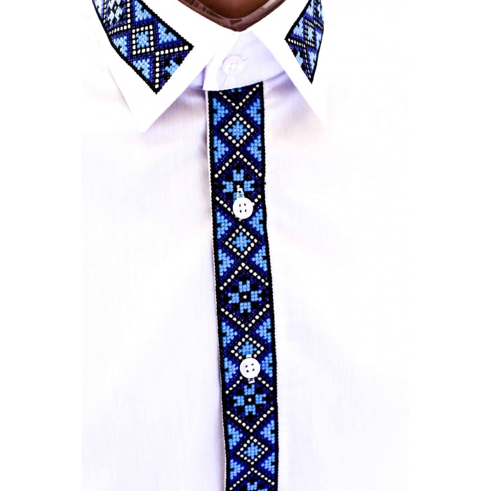Camasa romaneasca pentru barbati cu model traditional brodat la masina. Materialul si broderia sunt de inalta calitate.