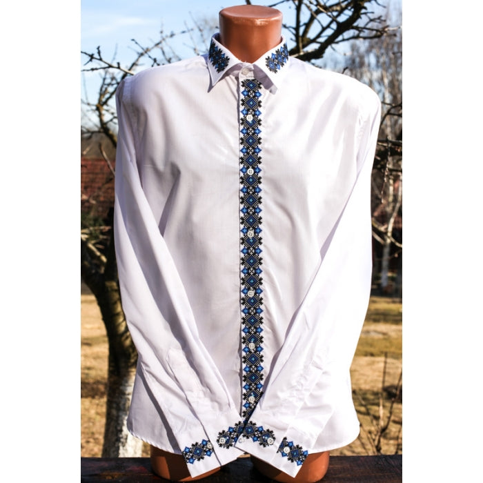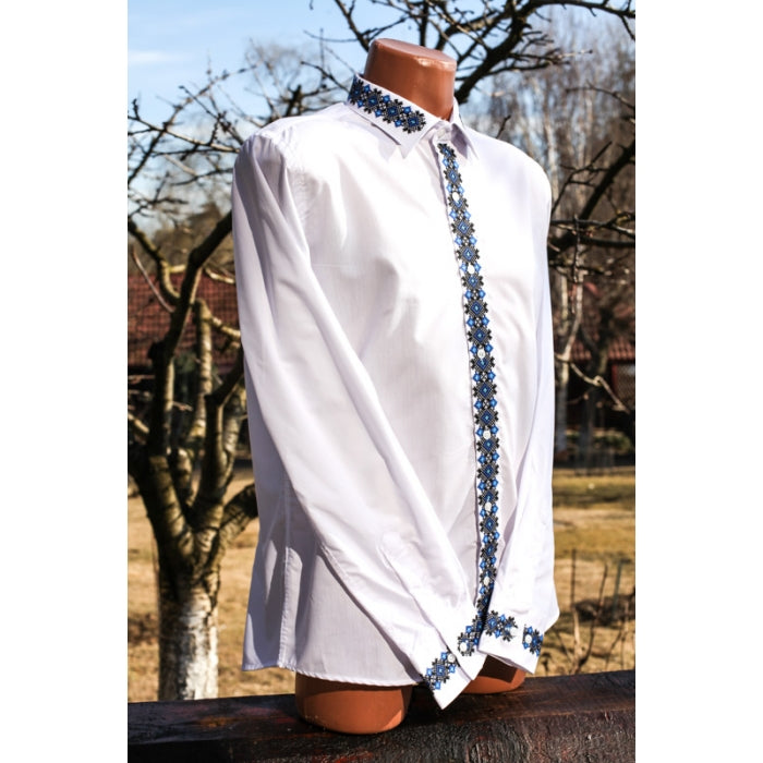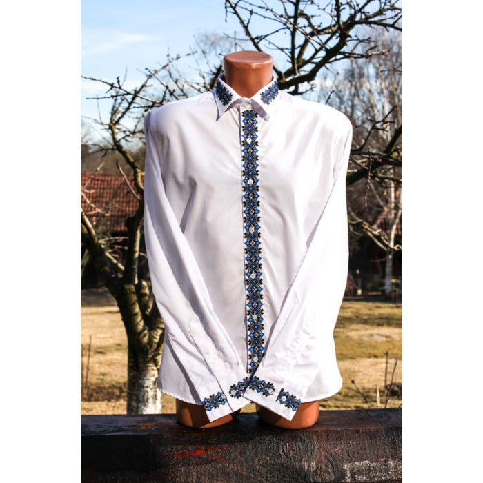 Camasa romaneasca stilizata pentru barbati cu model traditional brodat la masina. Materialul si broderia sunt de inalta calitate.