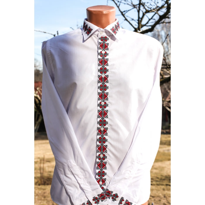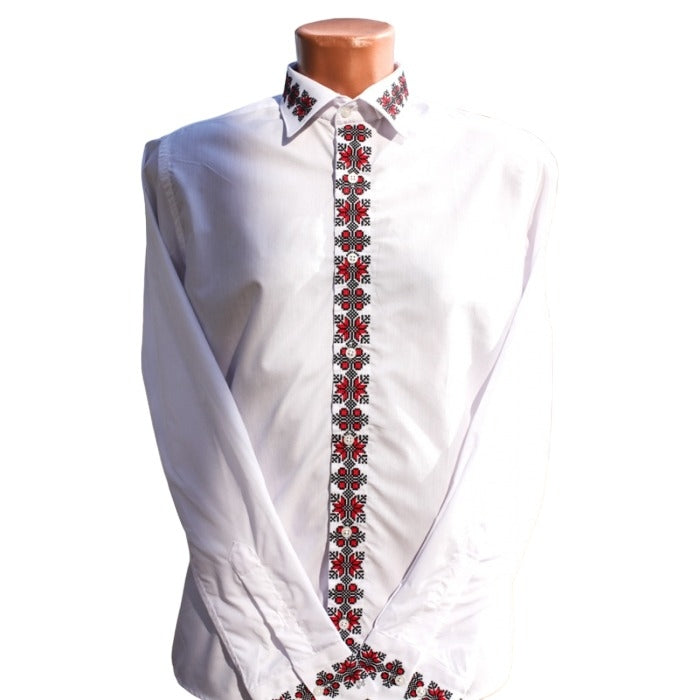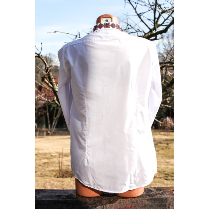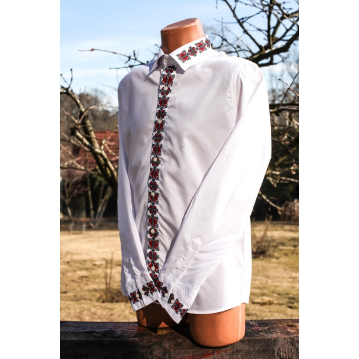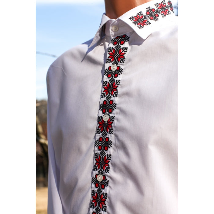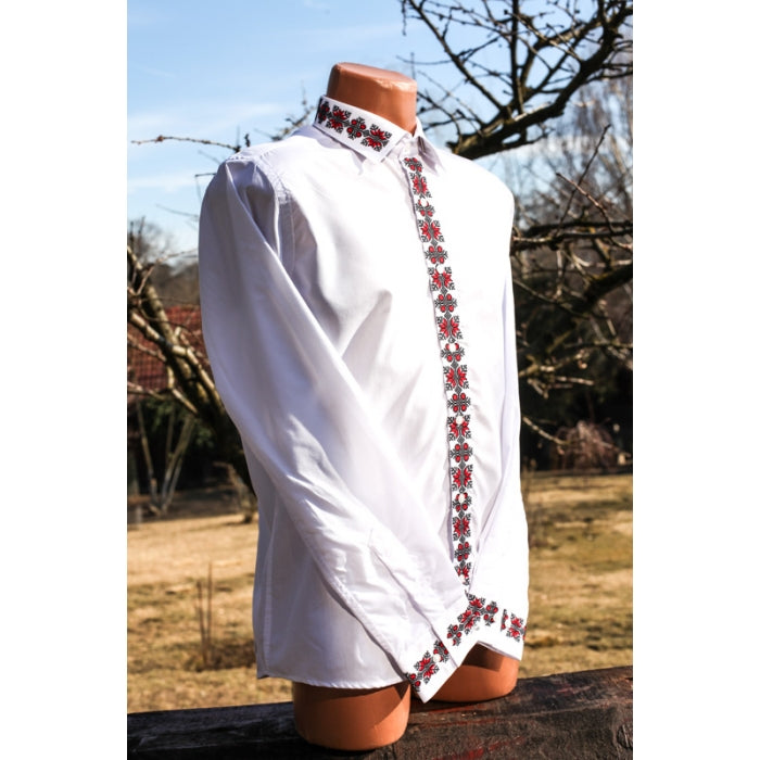 Camasa romaneasca stilizata pentru barbati cu model traditional brodat la masina. Materialul si broderia sunt de inalta calitate.