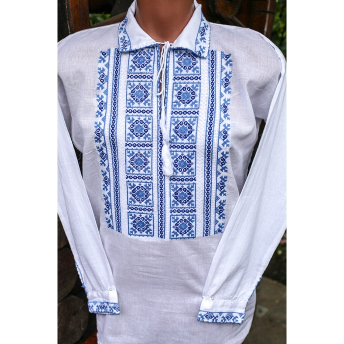Camasa romaneasca pentru barbati cu model traditional brodat la masina.
