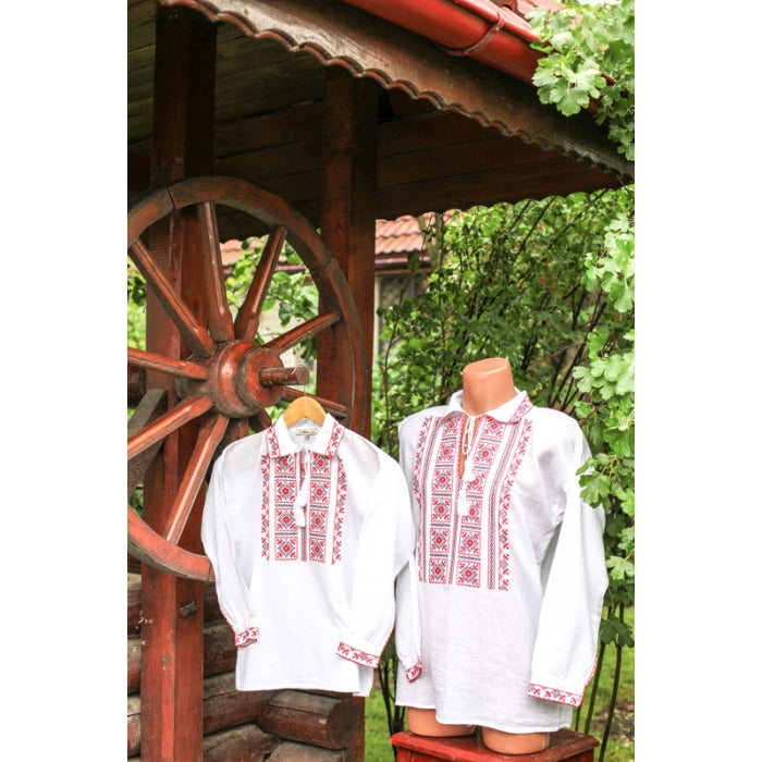 Camasa romaneasca pentru barbati cu model traditional brodat la masina. Tata fiu