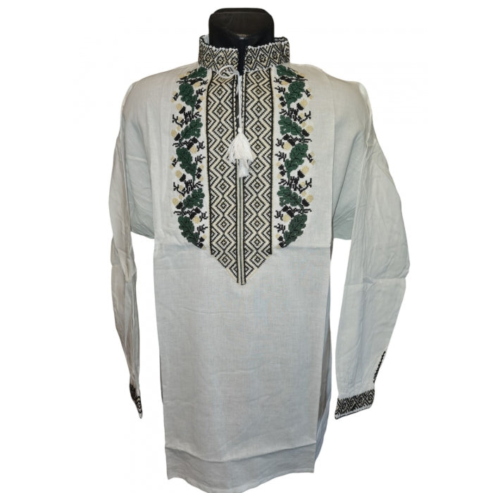 Descoperă eleganța și rafinamentul iei tradiționale românești, confecționată din bumbac 100% de înaltă calitate. Această ie cu mâneci lungi și motive tradiționale negre brodate pe piept, guler și manșete reprezintă un simbol al autenticității și culturii românești. Sistemul de închidere cu șnur oferă un plus de confort și autenticitate, fiind perfectă pentru a fi purtată atât la evenimente speciale, cât și în viața de zi cu zi.