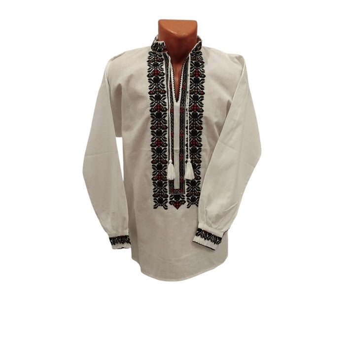 Ie tradițională românească cu motive negre, confecționată din bumbac 100%, reprezintă alegerea perfectă pentru cei ce doresc să poarte o piesă vestimentară cu adevărat autentică și de calitate. Această ie cu mâneci lungi, decorată cu broderii tradiționale negre pe piept, guler și manșete, emană eleganță și rafinament. Sistemul de închidere cu șnur adaugă un plus de autenticitate și confort.