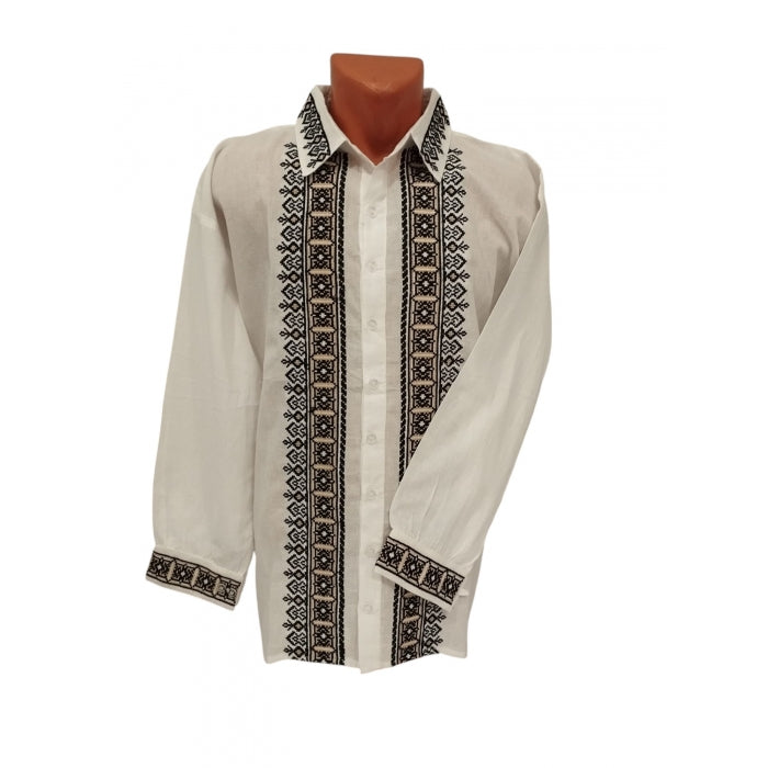 Descoperă eleganța și rafinamentul iei tradiționale românești, confecționată din bumbac 100% de înaltă calitate. Această ie cu mâneci lungi și motive tradiționale negre brodate pe piept, guler și manșete reprezintă un simbol al autenticității și culturii românești. Sistemul de închidere cu șnur oferă un plus de confort și autenticitate, fiind perfectă pentru a fi purtată atât la evenimente speciale, cât și în viața de zi cu zi.