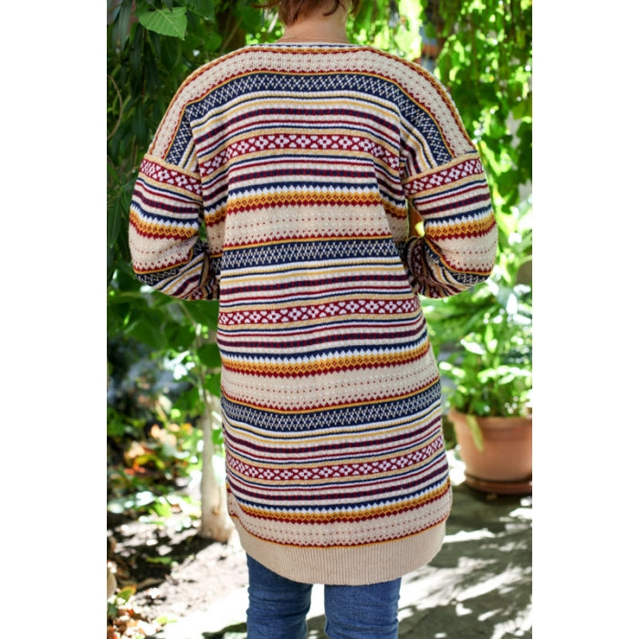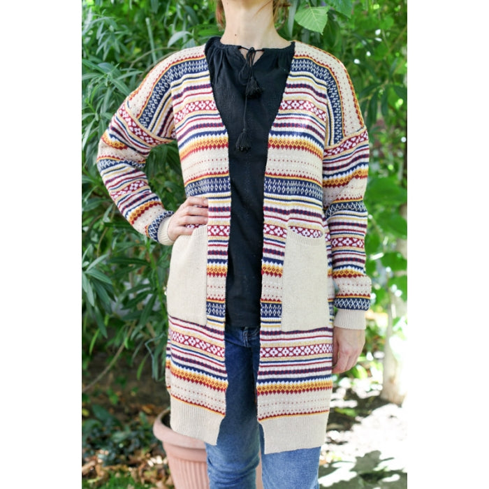 Cardigan tricotat din fir moale, umerii cazuti, maneci lungi si fara nasturi. Marime universala:115cm bust,96 cm lungime.