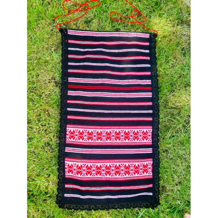 Catrinta brodata cu model traditional romanesc pe panza de acrilic cu poliester, cu captuseala. Set de doua bucati: fata/spate.