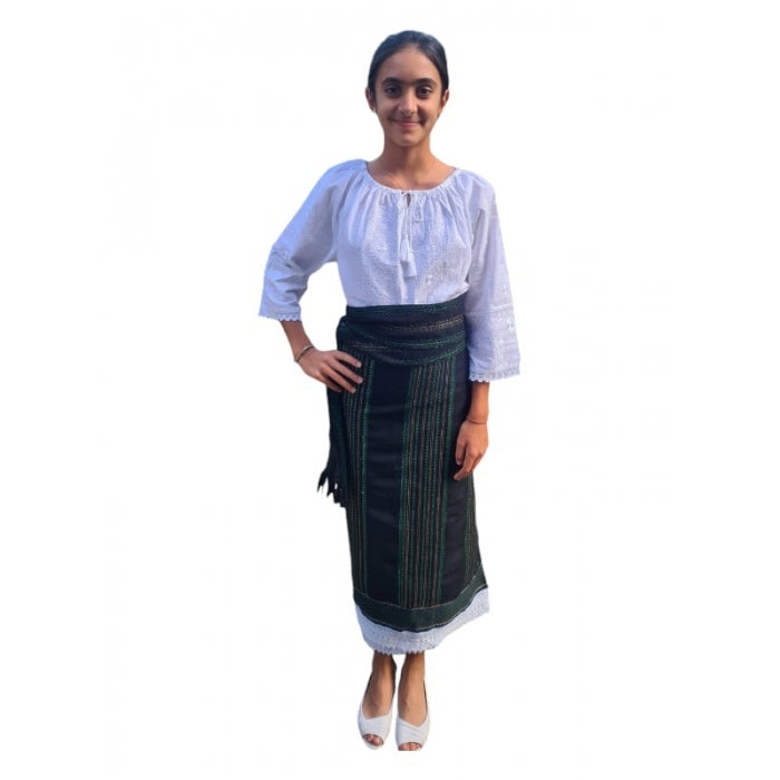 Acest set tradițional conține o catrintă și un brâu realizate din stofă cu lână (58% lână) și broderie cusută la mașină, inspirată din tradițiile românești. Catrinta are tivul decorat cu dantelă și vine cu o căptușeală din nylon, pentru confort sporit. Sistemul de prindere petrecut în talie este ajustabil cu ajutorul capselor metalice, oferind flexibilitate în purtare.