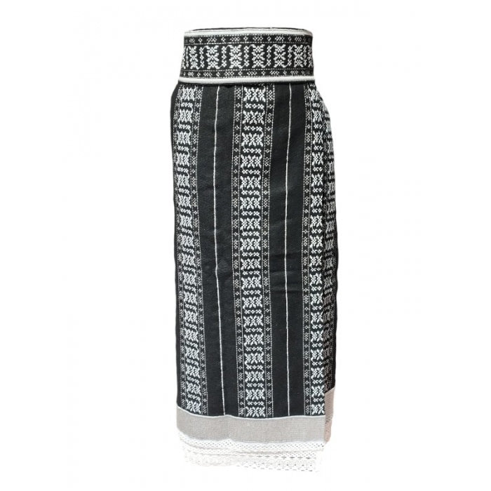 Acest set tradițional conține o catrintă și un brâu realizate din stofă cu lână (58% lână) și broderie cusută la mașină, inspirată din tradițiile românești. Catrinta are tivul decorat cu dantelă și vine cu o căptușeală din nylon, pentru confort sporit. Sistemul de prindere petrecut în talie este ajustabil cu ajutorul capselor metalice, oferind flexibilitate în purtare.
