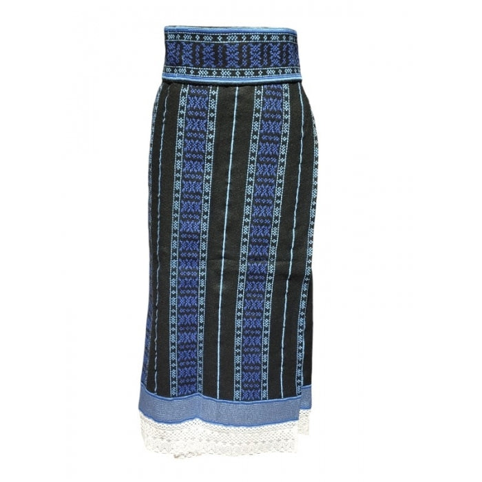Material: stofa cu lana in compozitie 58%. Broderie cusuta la masina. Captuseala din nylon. Tiv catrinta din dantela de bumbac.