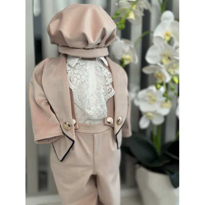 Costum de botez pentru băieți, disponibil în mărimi variate. Fabricat în România din materiale premium, ideal pentru un eveniment elegant.
