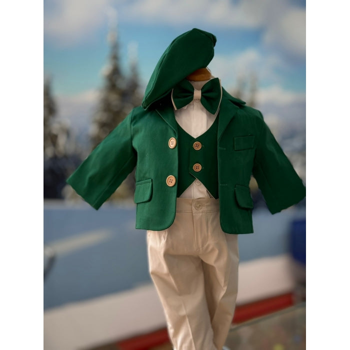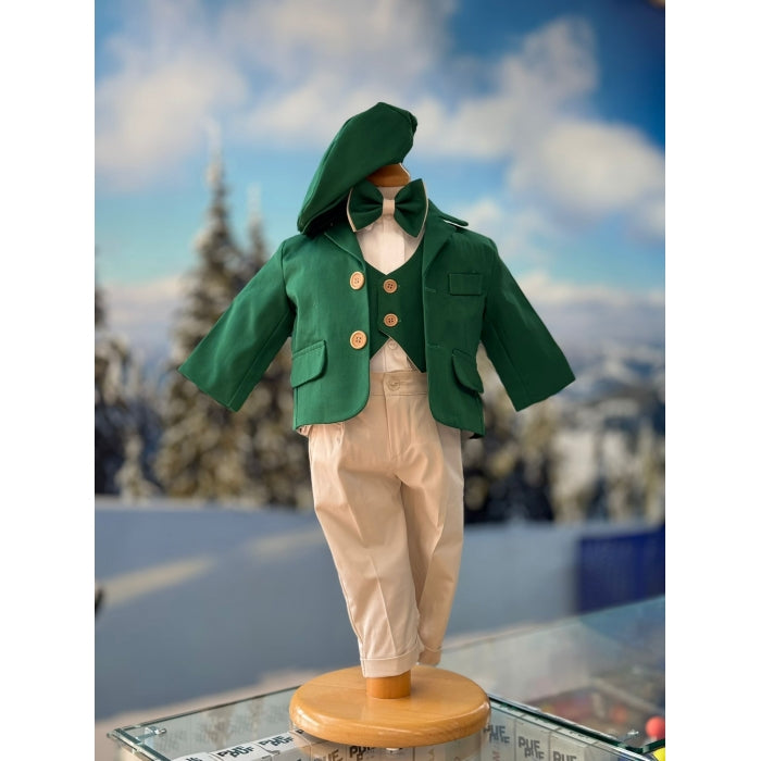 Setul contine : sacou, camasa , pantalon, caciula, botosei