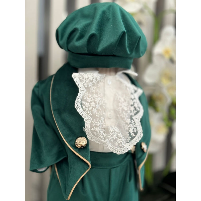 Setul contine : sacou, camasa , pantalon, caciula, botosei